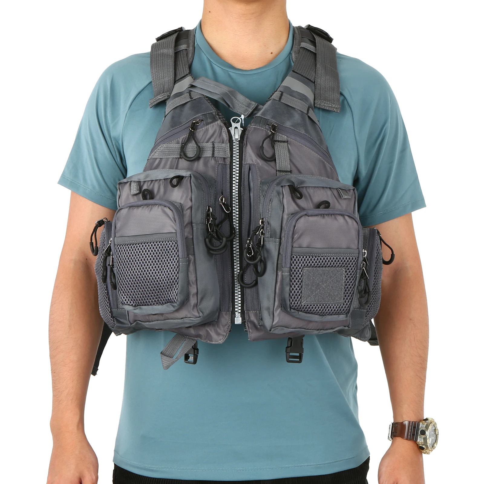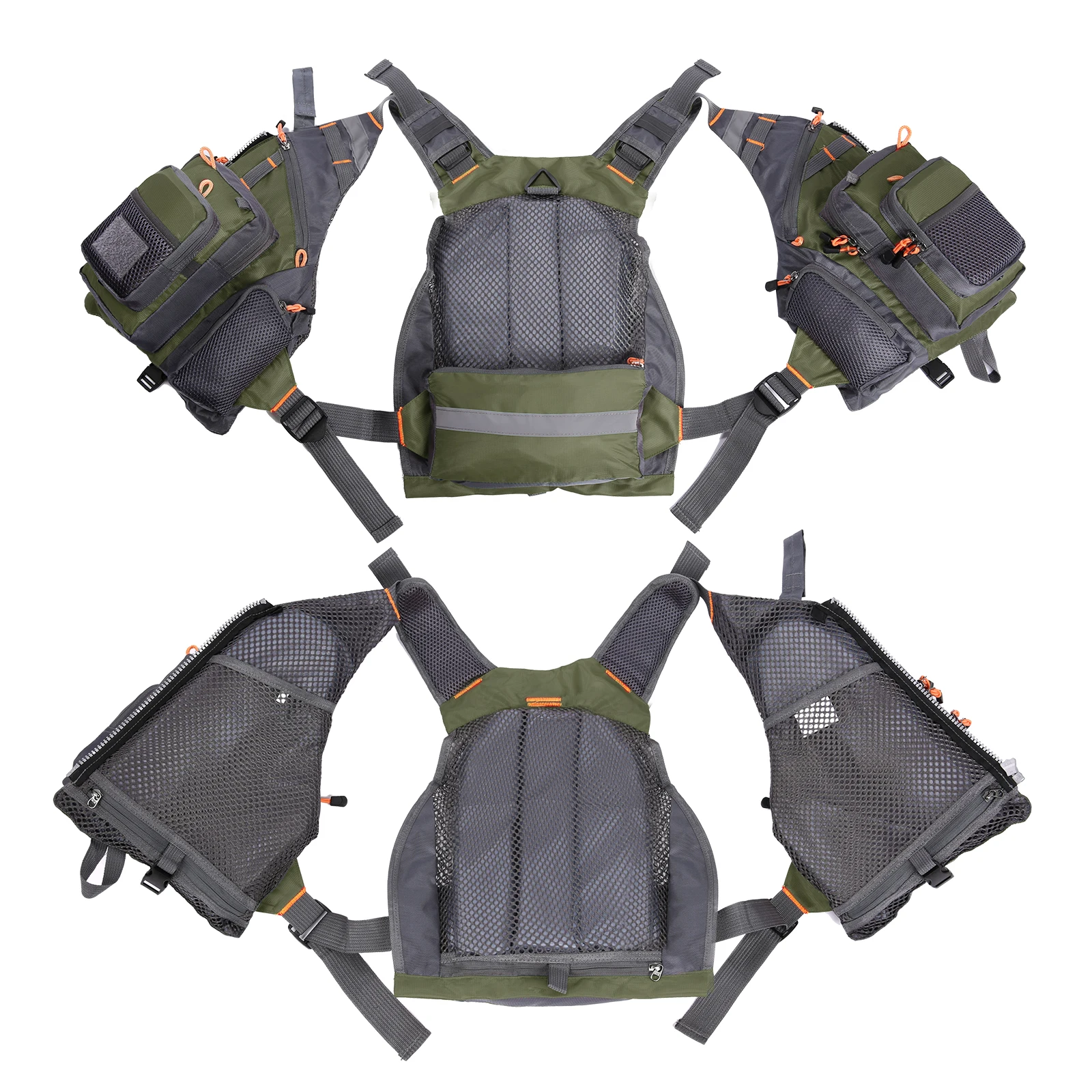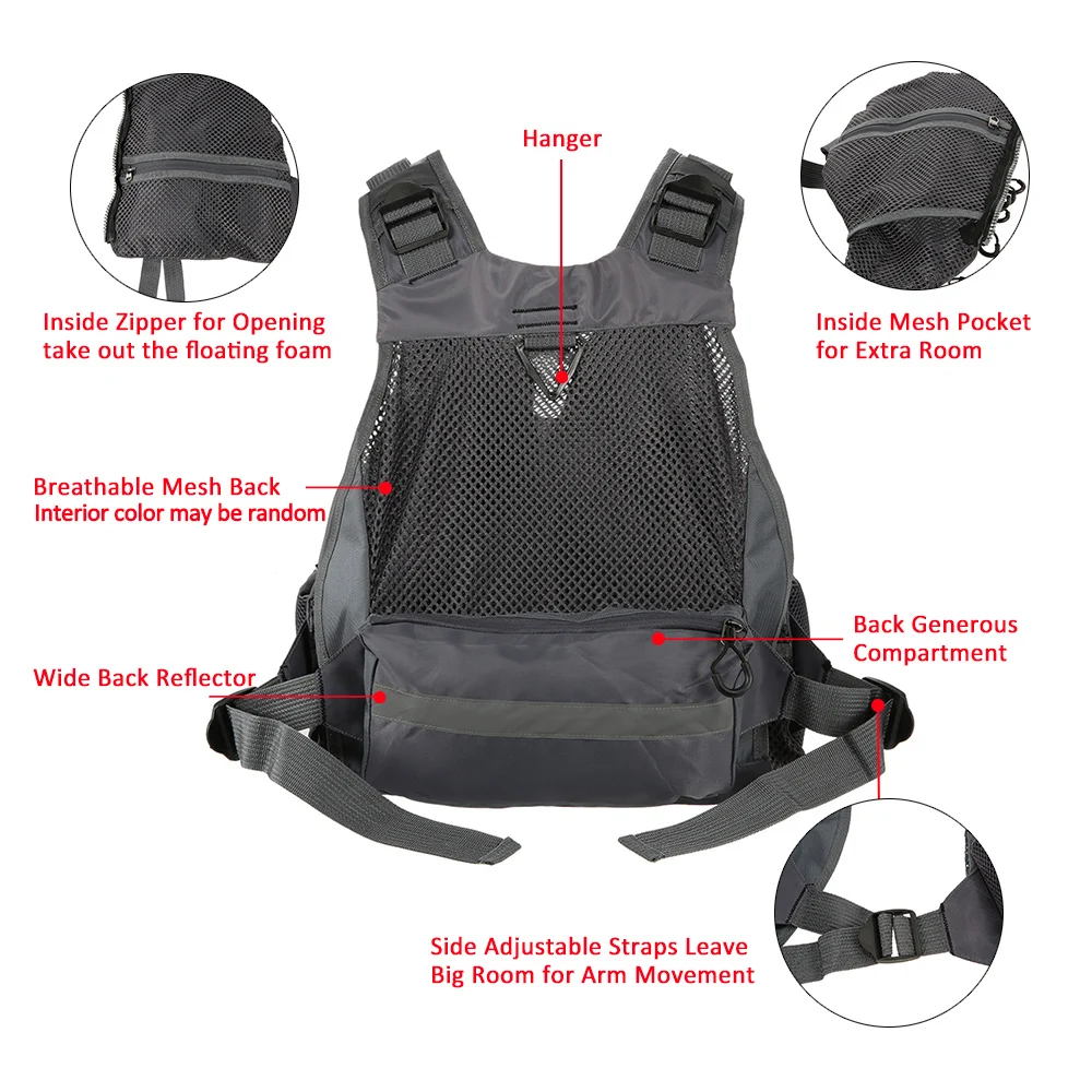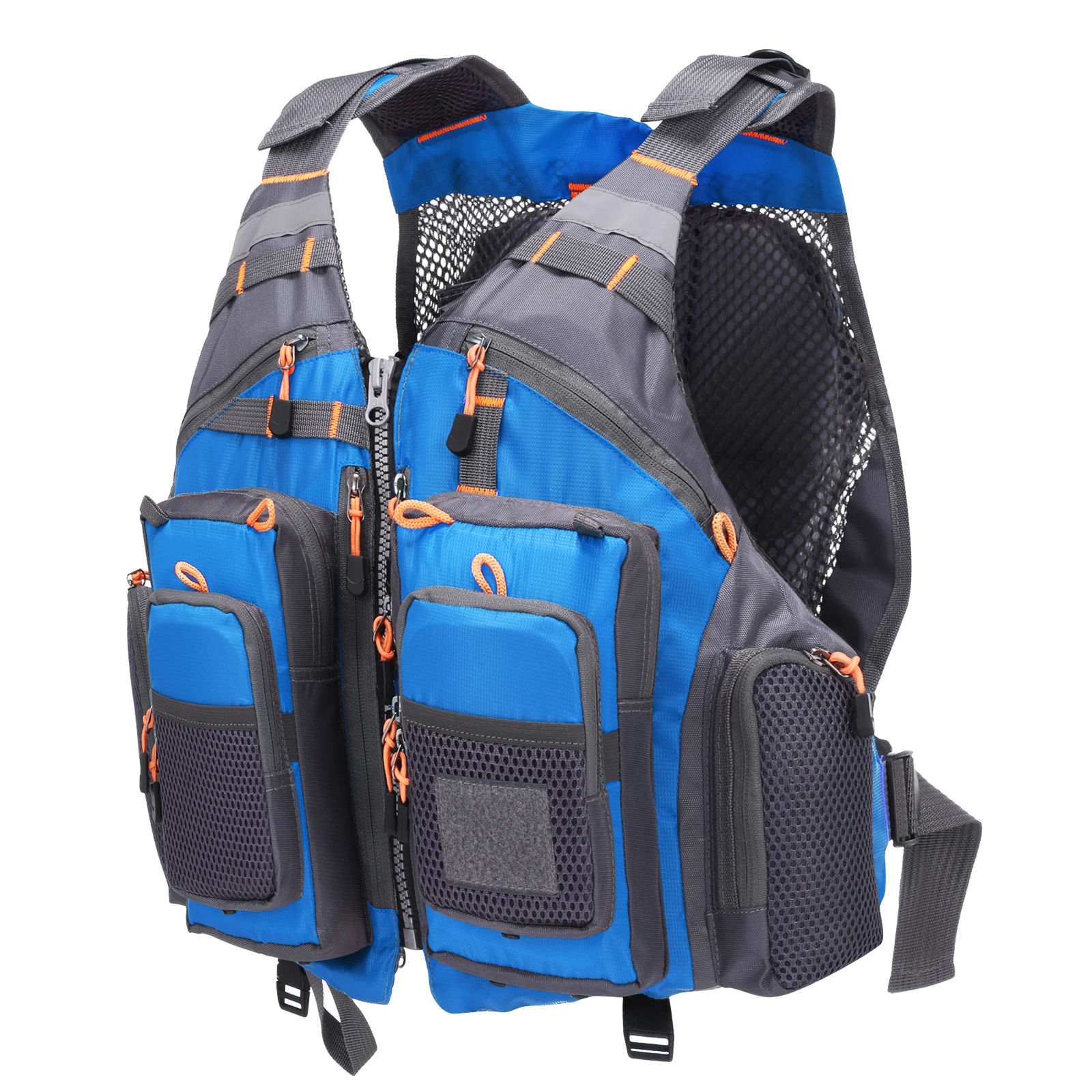 Este colete salva-vidas para pesca se assemelha mais a um colete para atividades ao ar livre, com um total de 11 bolsos com zíper, escadas multifixação e presilhas para acessórios na parte frontal, além de amplos refletores nas costas e no ombro. Por baixo, há um dispositivo de flutuação totalmente funcional, destacável para servir como suporte para equipamentos de pesca. Este colete serve em praticamente qualquer pessoa, graças às suas tiras de cinco informações com tela. Se sua principal prioridade é guardar equipamentos, este colete salva-vidas é único. É ótimo para pescar com mosca, caiaque, canoa (praticamente qualquer tipo de pesca).