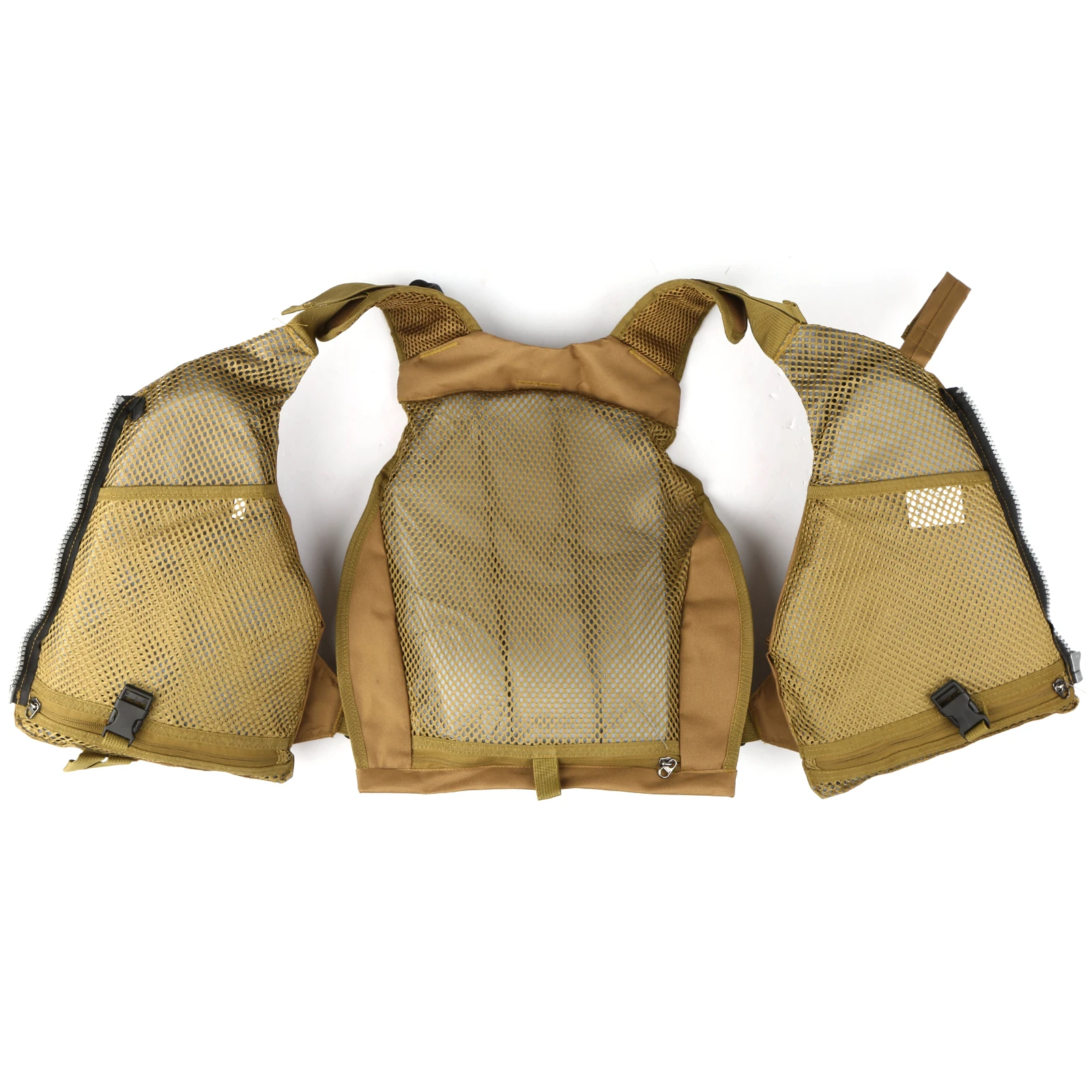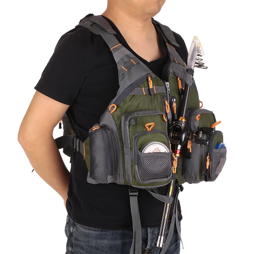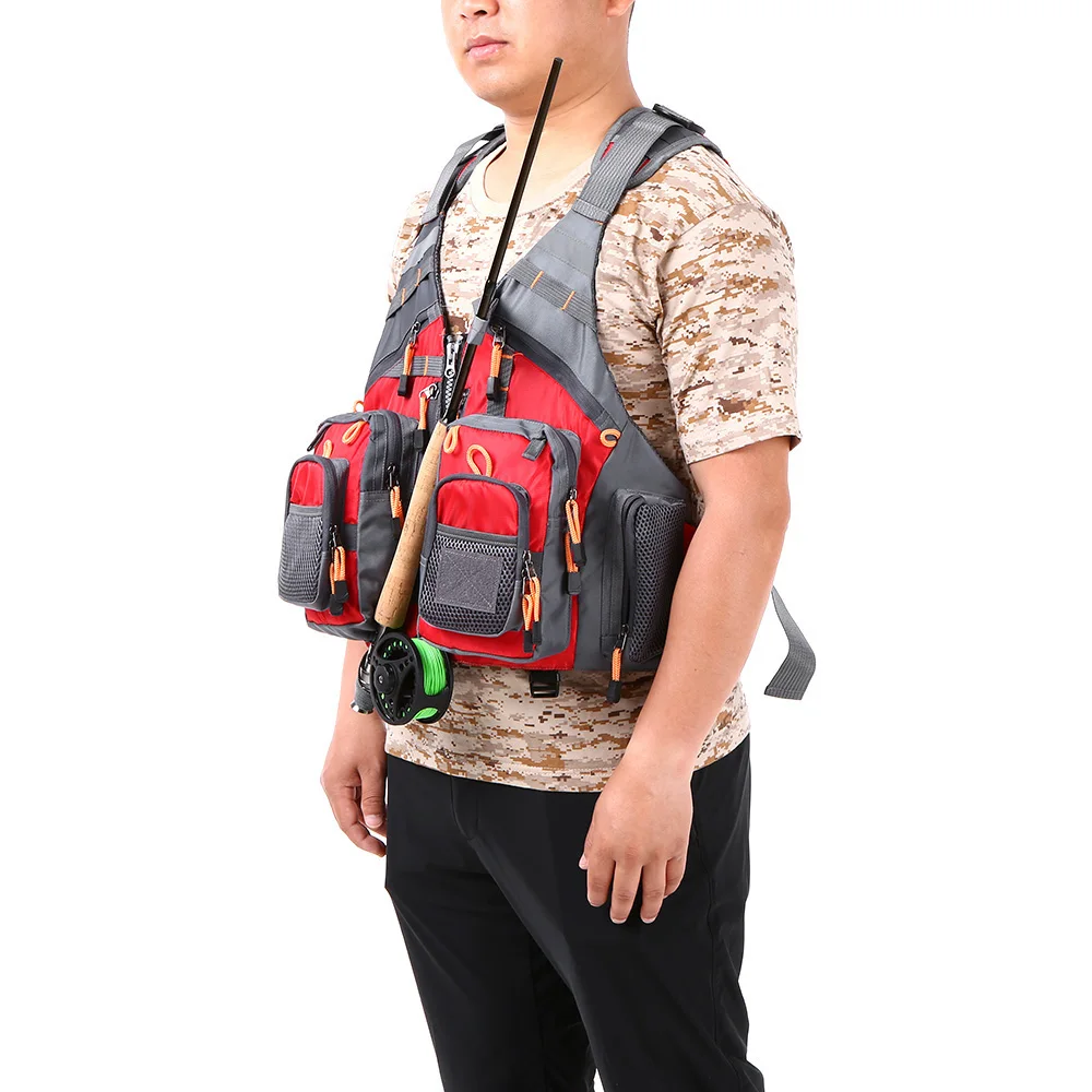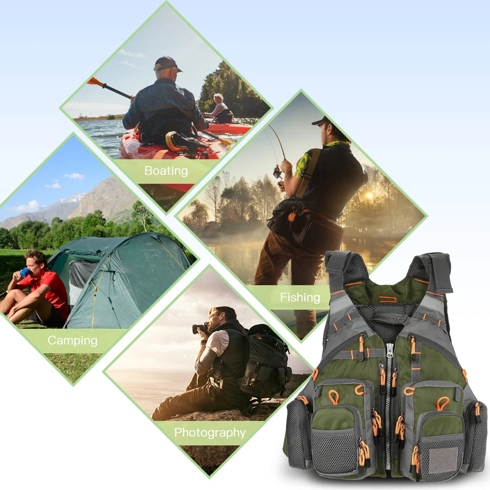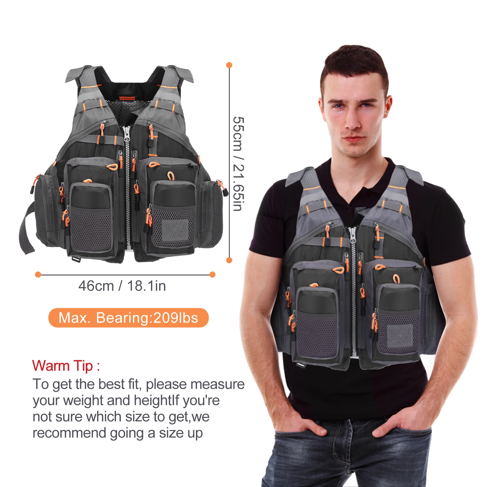 Este colete salva-vidas para pesca se assemelha mais a um colete para atividades ao ar livre, com um total de 11 bolsos com zíper, escadas multifixação e presilhas para acessórios na parte frontal, além de amplos refletores nas costas e no ombro. Por baixo, há um dispositivo de flutuação totalmente funcional, destacável para servir como suporte para equipamentos de pesca. Este colete serve em praticamente qualquer pessoa, graças às suas tiras de cinco informações com tela. Se sua principal prioridade é guardar equipamentos, este colete salva-vidas é único. É ótimo para pescar com mosca, caiaque, canoa (praticamente qualquer tipo de pesca).