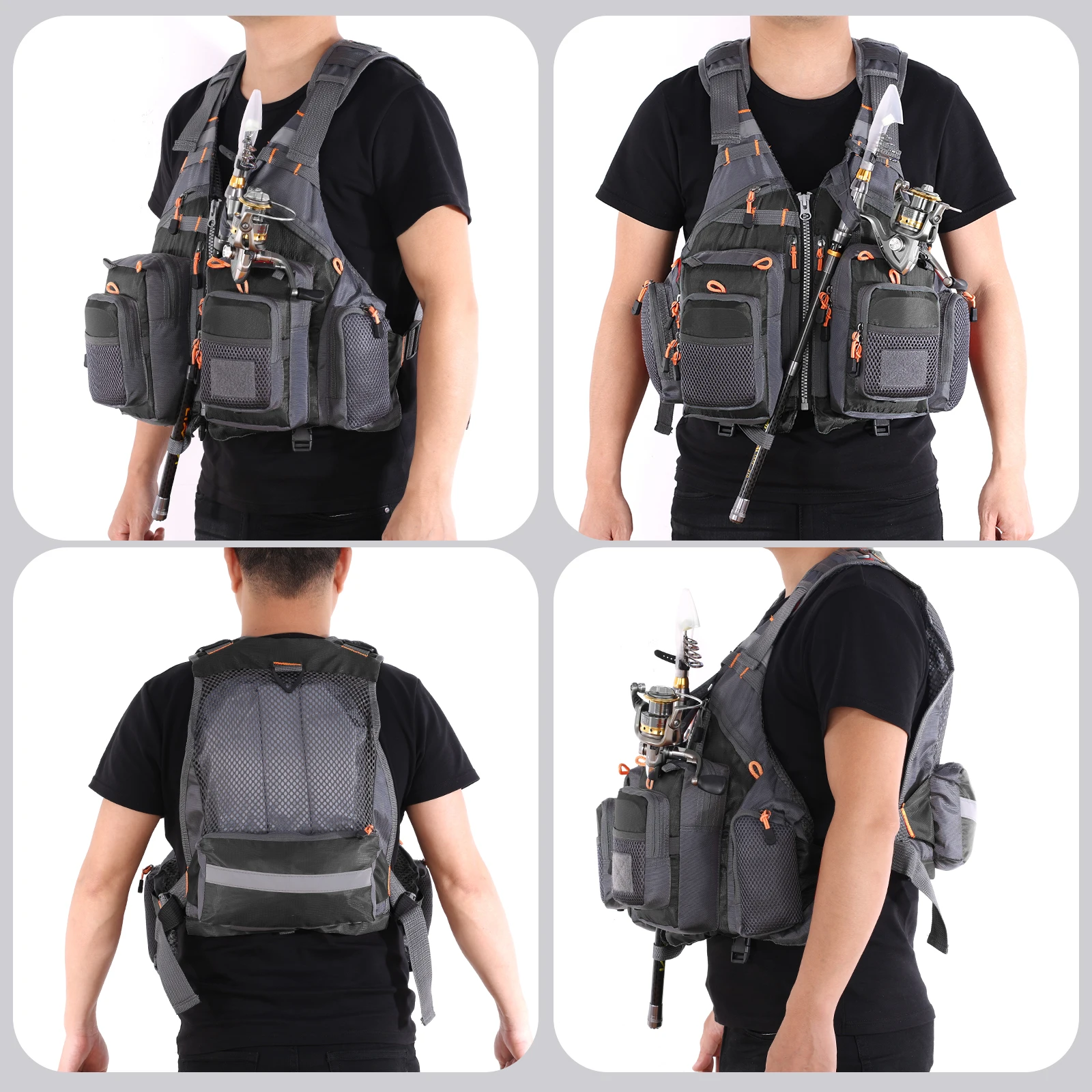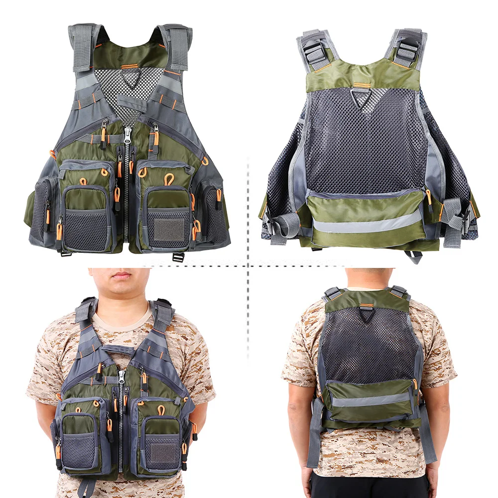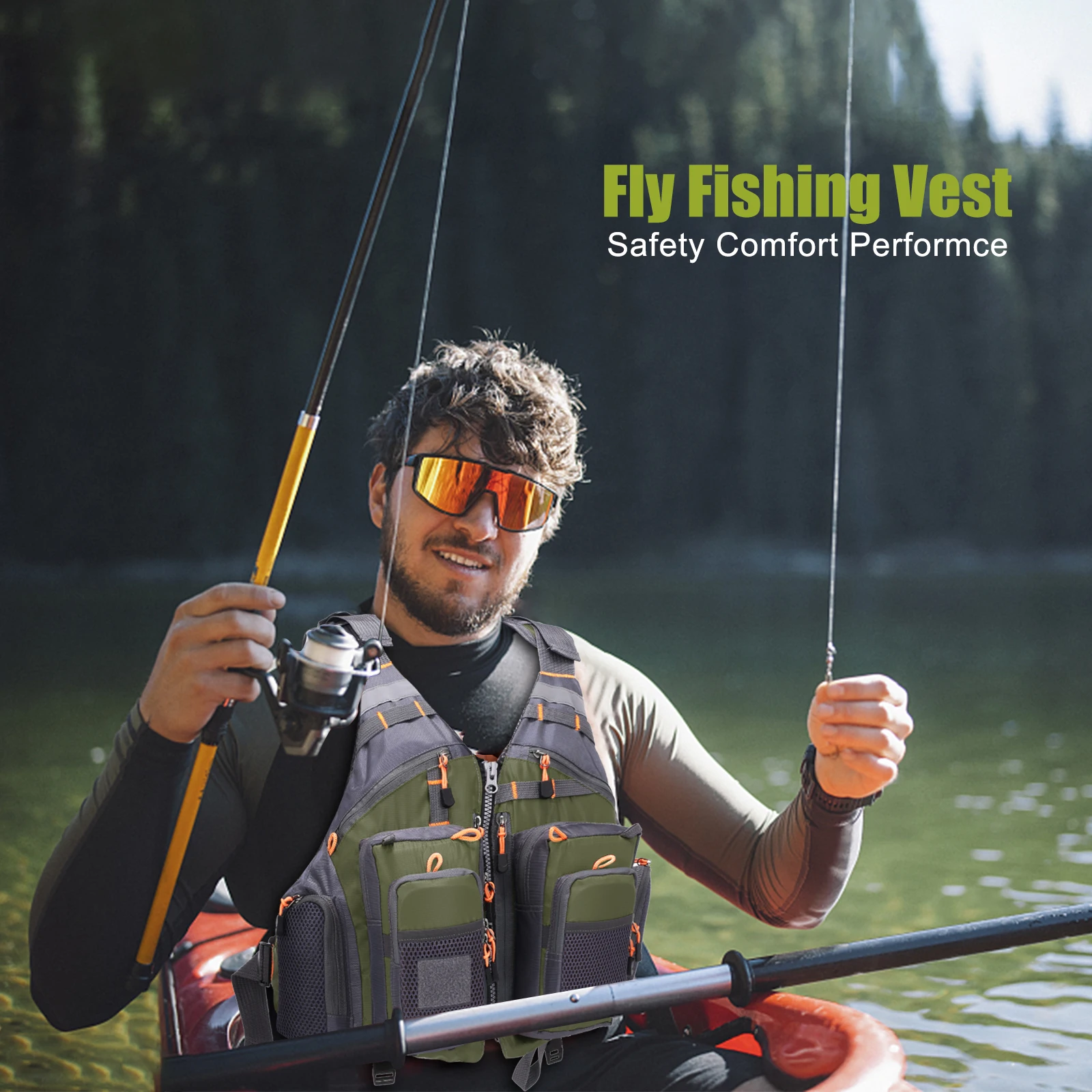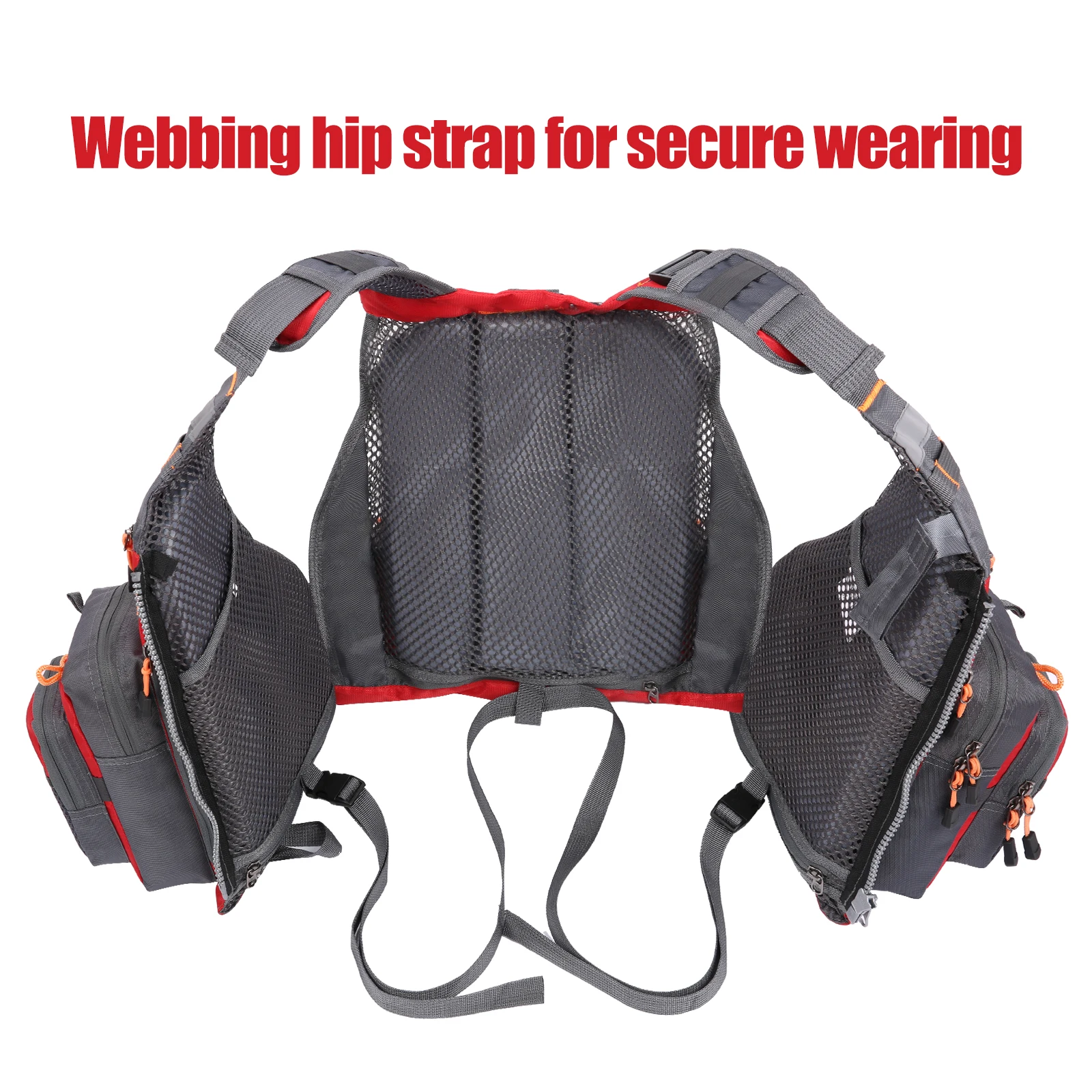 Este colete salva-vidas para pesca se assemelha mais a um colete para atividades ao ar livre, com um total de 11 bolsos com zíper, escadas multifixação e presilhas para acessórios na parte frontal, além de amplos refletores nas costas e no ombro. Por baixo, há um dispositivo de flutuação totalmente funcional, destacável para servir como suporte para equipamentos de pesca. Este colete serve em praticamente qualquer pessoa, graças às suas tiras de cinco informações com tela. Se sua principal prioridade é guardar equipamentos, este colete salva-vidas é único. É ótimo para pescar com mosca, caiaque, canoa (praticamente qualquer tipo de pesca).