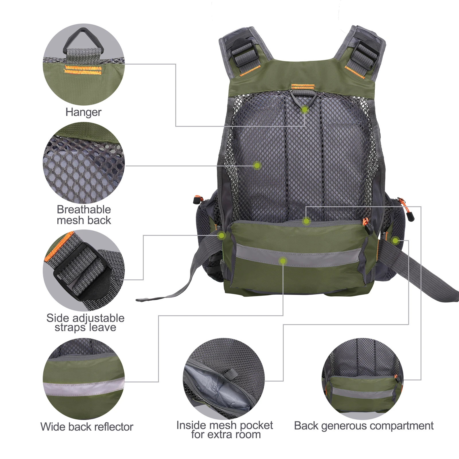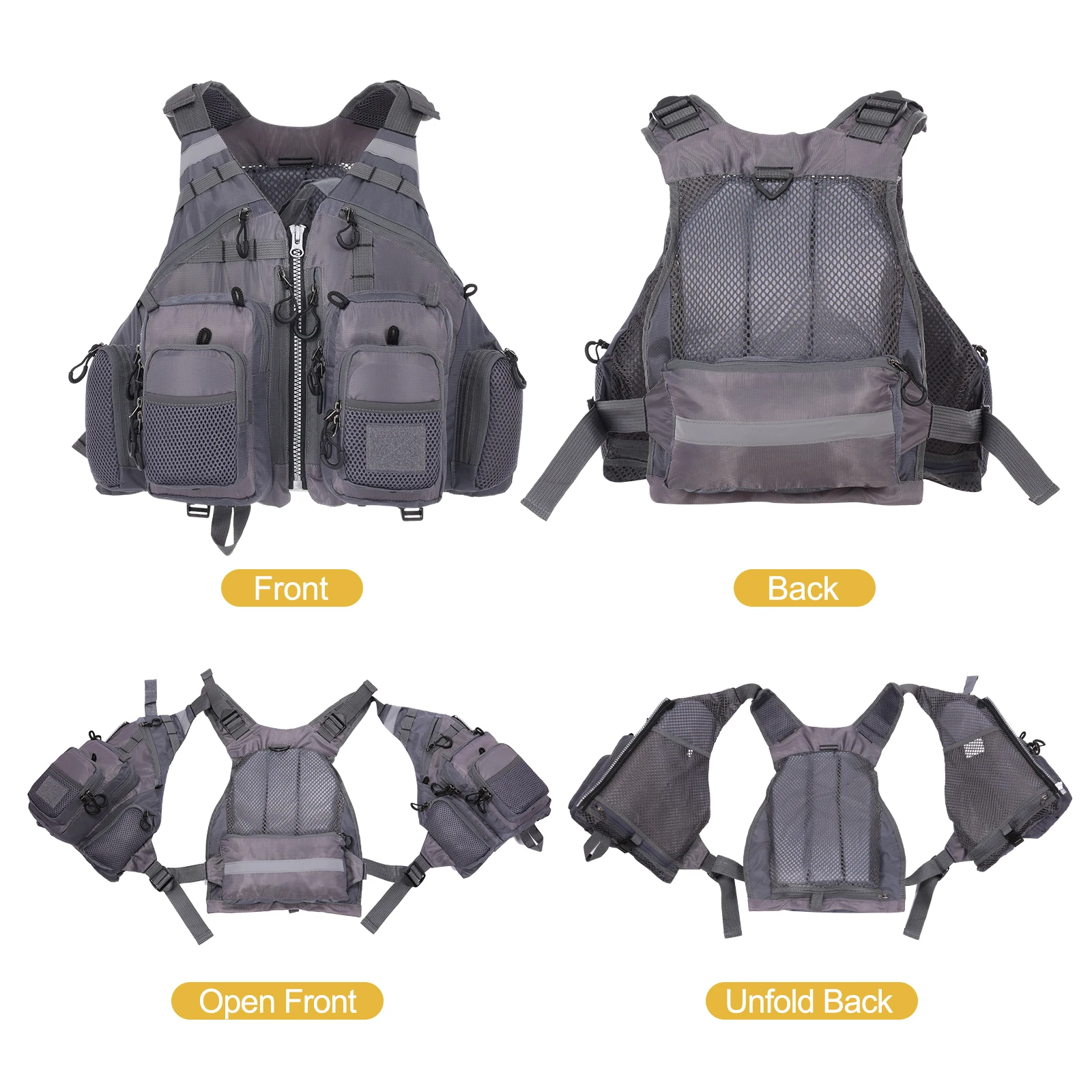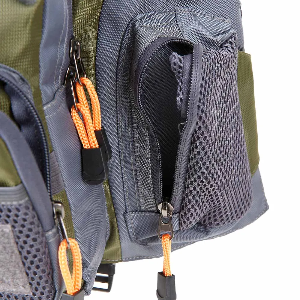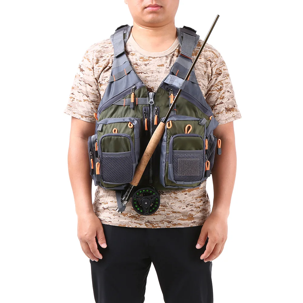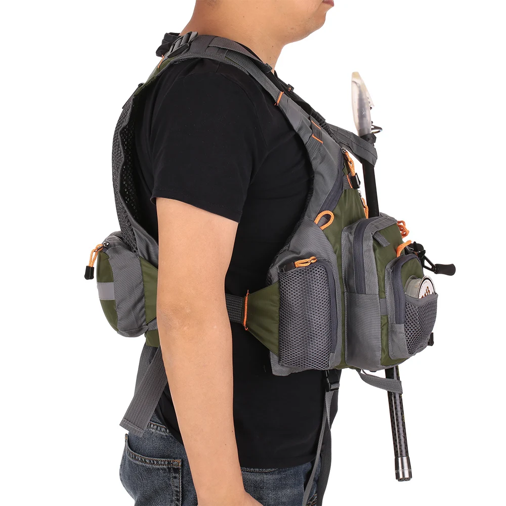 Este colete salva-vidas para pesca se assemelha mais a um colete para atividades ao ar livre, com um total de 11 bolsos com zíper, escadas multifixação e presilhas para acessórios na parte frontal, além de amplos refletores nas costas e no ombro. Por baixo, há um dispositivo de flutuação totalmente funcional, destacável para servir como suporte para equipamentos de pesca. Este colete serve em praticamente qualquer pessoa, graças às suas tiras de cinco informações com tela. Se sua principal prioridade é guardar equipamentos, este colete salva-vidas é único. É ótimo para pescar com mosca, caiaque, canoa (praticamente qualquer tipo de pesca).